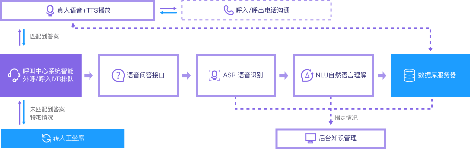 基于真人语音和语音合成的人机对话,通过多次交互深刻理解客户意图,通过多轮会话可以解决例如外呼营销、回访等全场景业务问题