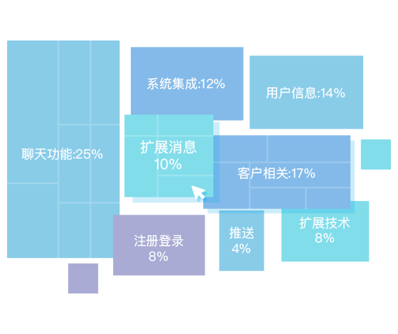关键词通过全局分析展示出使用频次最多的关键词,也可以通过自然语言处理,聚合成内容相关的主题分类。客服管理团队可以清晰的看到使用频次的主题分类以及对应的关键词和消息内容,最便捷的看到访客都在说些什么